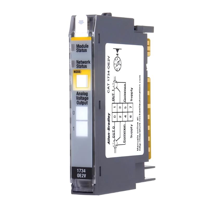 The Allen Bradley 1734-OE2V Analog Output Module provides precise analog voltage control within POINT I/O distributed systems. Its compact design enables engineers to implement high-density automation configurations while delivering reliable and accurate voltage outputs to critical field devices.