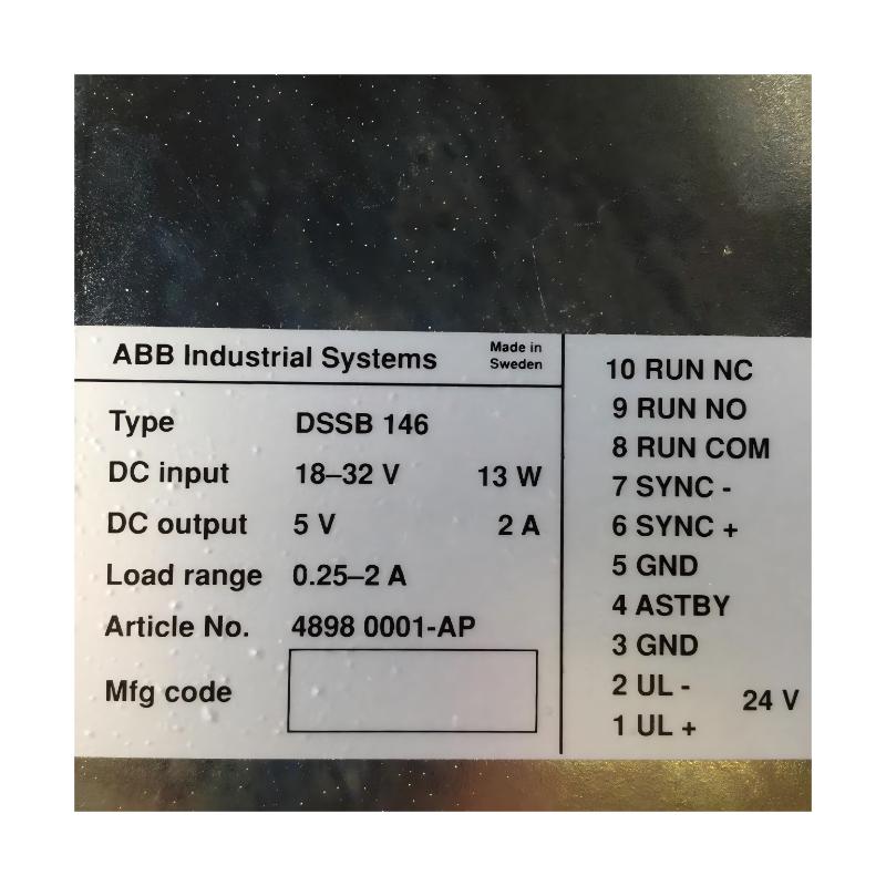 The ABB DSSB 146 48980001-AP converter is a compact and robust DC/DC power module engineered for industrial automation systems. It plays a critical role in converting and stabilizing DC voltage levels within ABB control architectures, ensuring safe and consistent power delivery to sensitive electronic subsystems.