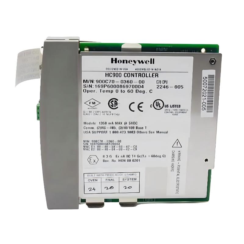 The Honeywell 900C70S-0360-00 HC900 Controller is a central processing module designed for industrial automation and process control applications. It provides reliable execution of control logic, system coordination, and flexible scalability for complex industrial environments, making it a core component of the HC900 platform.